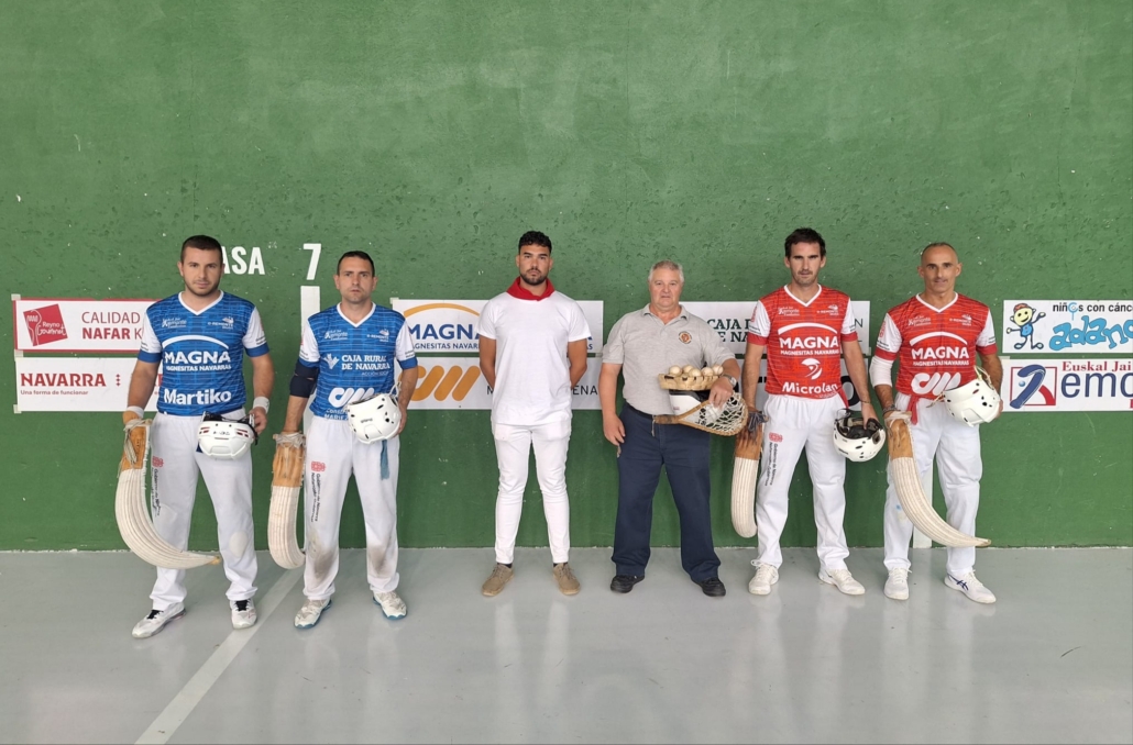 No obstante, esa ventaja, que a la postre marcó el devenir del encuentro, fue fruto de las condiciones del frontón a las que Matxin III-Barricart se aclimataron antes. Una cancha difícil con una pared izquierda rugosa. A la pareja guipuzcoana le costó mucho adecuarse a esas características mientras que los azules, más asentados, cumplieron con sus papeles: Matxin se adjudicó 20 tantos y Barricart no cometió errores forzados. Con esos ingredientes, el de Azpeitia y el de Aoiz metieron la directa conscientes de lo mucho que tenían en juego en Santacara. Una derrota les dejaba contras las cuerdas al borde de la eliminación.