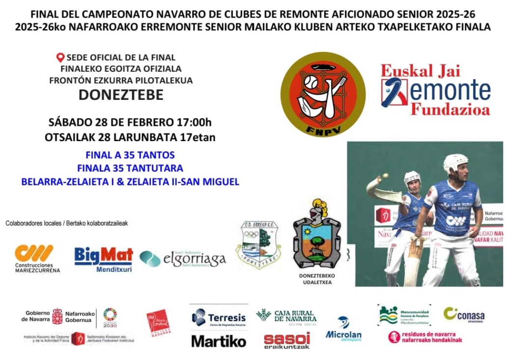 Este próximo viernes 4 de abril, a partir de las 19 horas, el frontón Labrit de Iruña- Pamplona se viste de gala para acoger las finales (Promoción y Primera) del XI TORNEO DE REMONTE PROFESIONAL CASCO VIEJO DE PAMPLONA-G.P. CONSTRUCCIONES MARIEZCURRENA 2025.