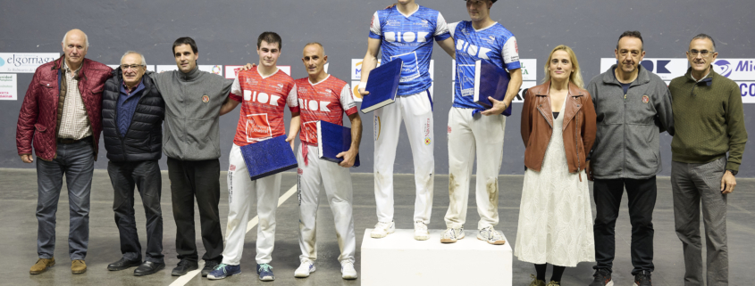 Pero el subidón les duró poco a los colorados. Otra vez se escaparon los azules con Otxandorena haciendo gala de su acierto. Otxandorena-Otano se las prometían felices con el 27-33 y ya acariciaban las txapelas, pero Zeberio II-Mitxeo lucharon hasta el final. Se colocaron 31-33 y los nervios llegaban a los azules. Sin embargo, no dejaron perder la oportunidad y desbarataron las ilusiones coloradas. El doneztebarra y el agoizko cortaron la racha y se hicieron con el título gracias al 31-35.